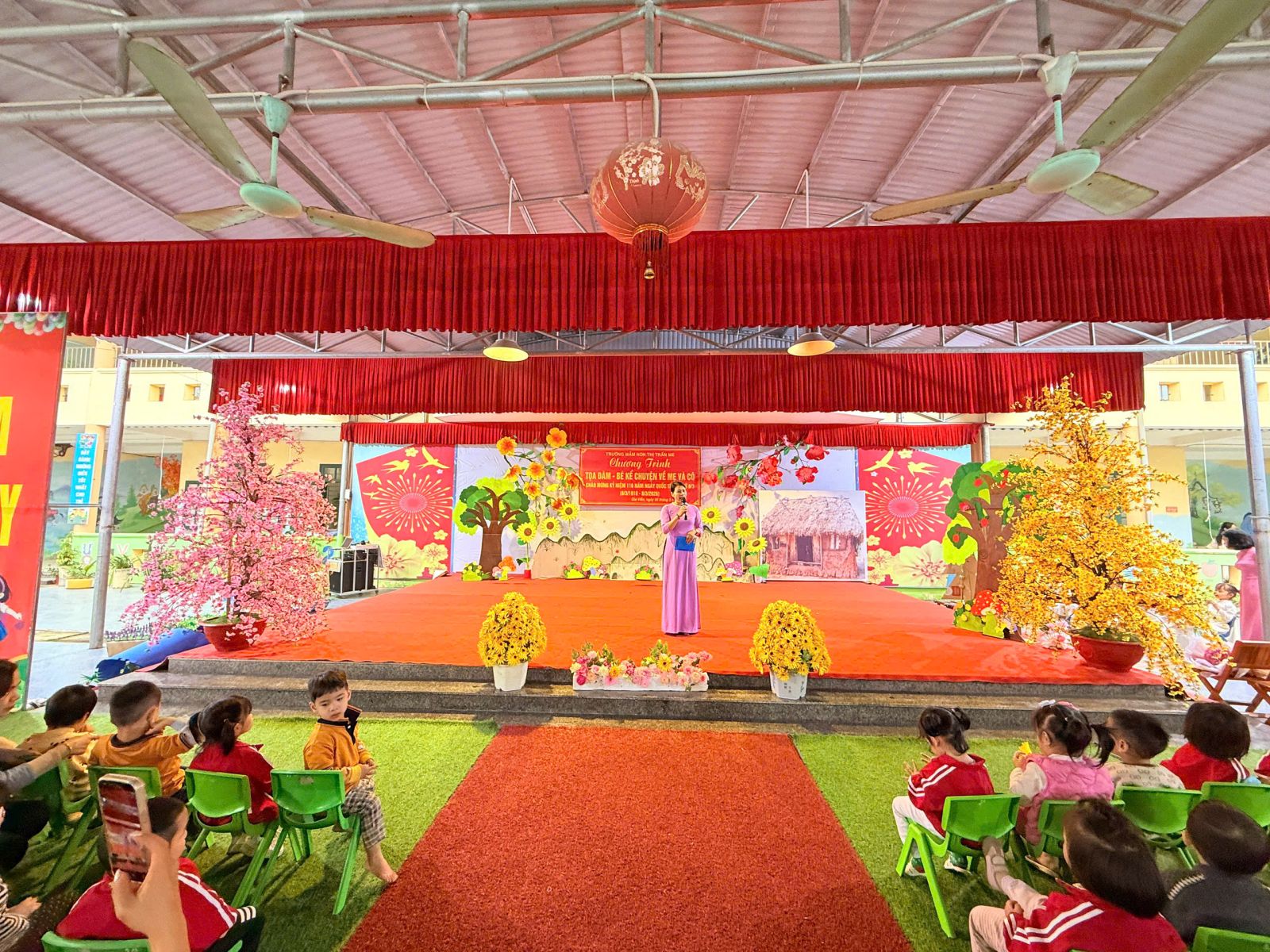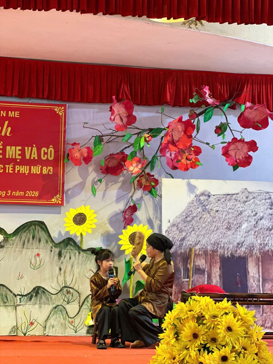 Chương trình tiếp tục với chuỗi tiết mục văn nghệ đặc sắc và đặc biệt, vở kịch “Bông hoa cúc trắng” do cô và trò nhà trường biểu diễn đã để lại nhiều ấn tượng sâu sắc. Câu chuyện cảm động về tình mẫu tử thiêng liêng đã giúp các bé hiểu thêm về tình yêu thương và sự hy sinh của mẹ.