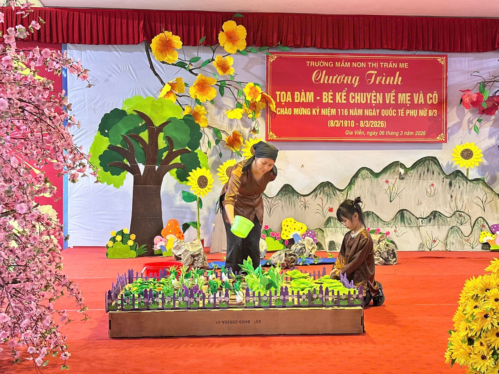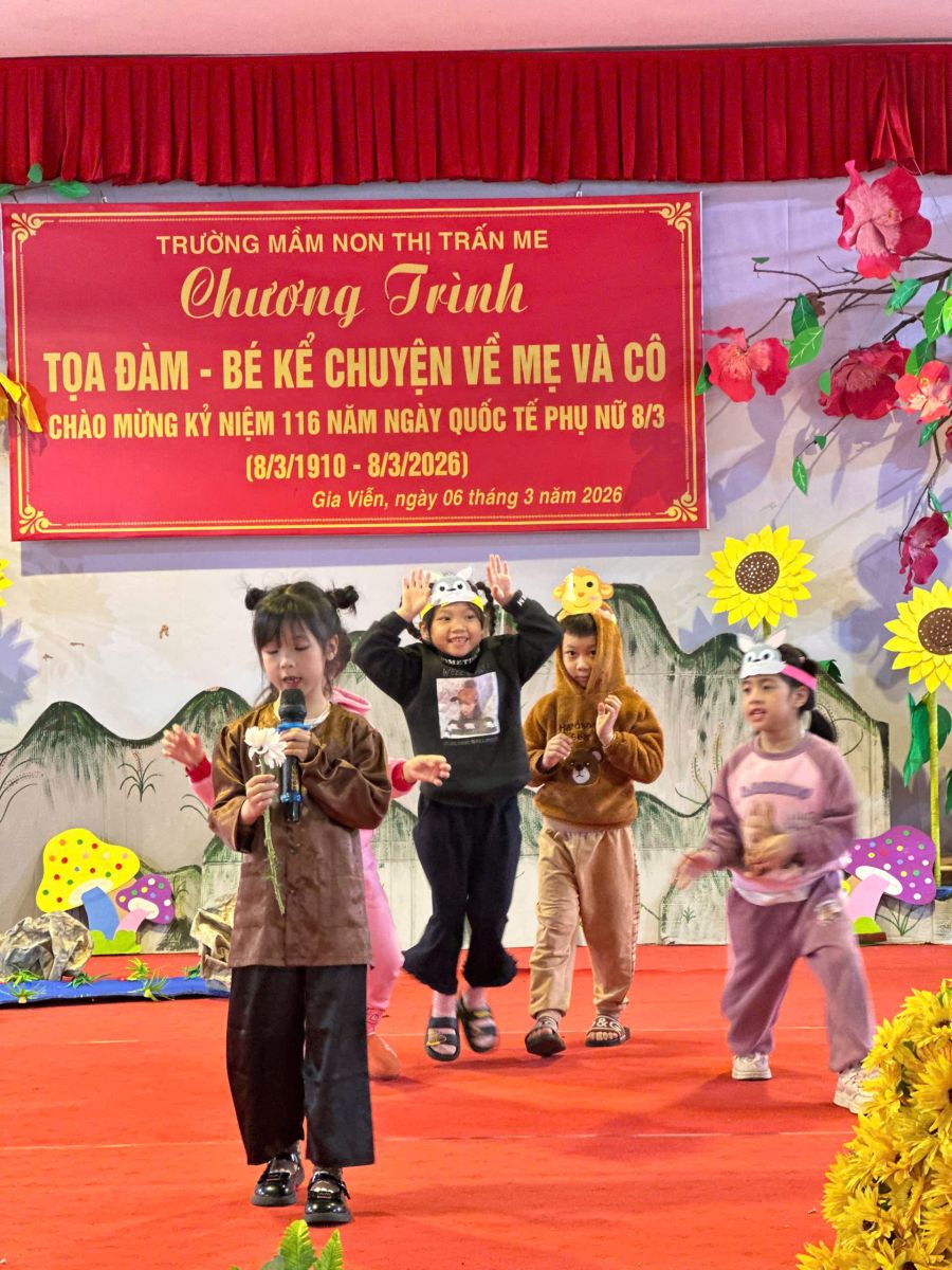 Trường Mầm non thị trấn Me tổ chức chương trình Tọa đàm “Bé kể chuyện về mẹ và cô” chào mừng kỷ niệm 116 năm ngày Quốc tế phụ nữ (8/3/1910-8/3/2026)